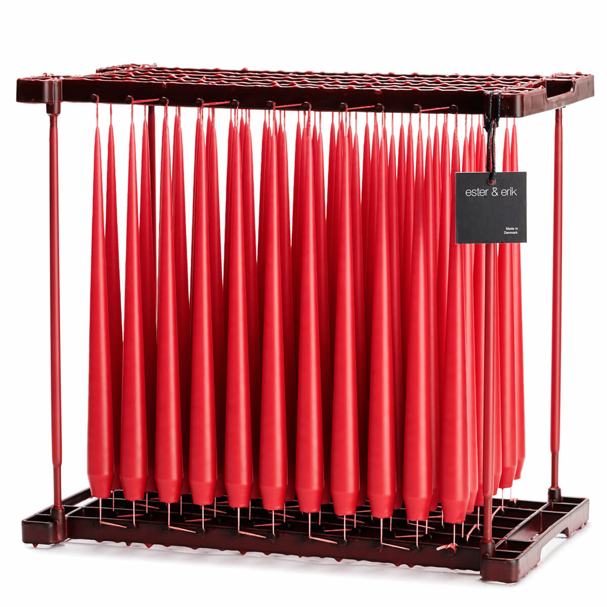 Ester & Erik ‘SAFFRON DUST’ tapered candle. The NO. 33 shade is described as ‘Warm red with a slight orangey tinge’. The candle length is 32cm and it has a matt finish.