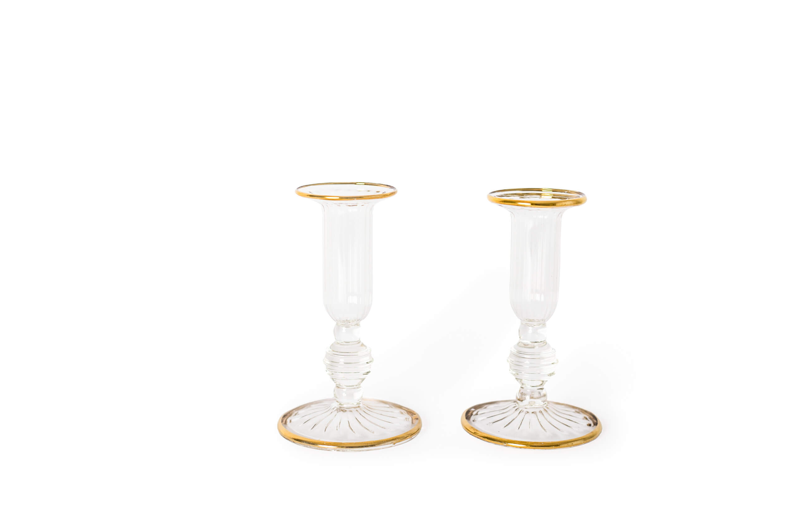Fluted Gold Rimmed Glass Candlestick